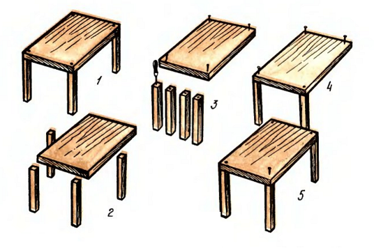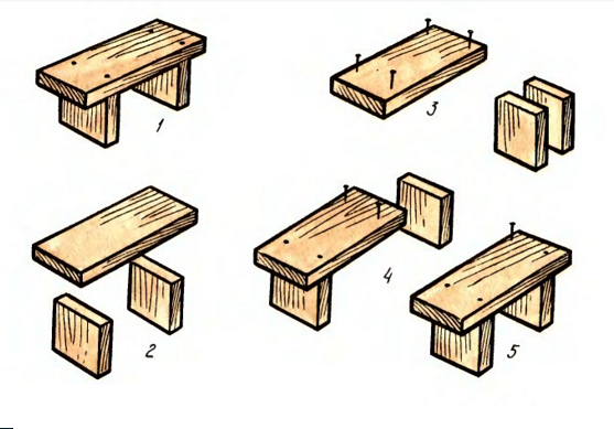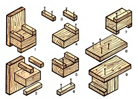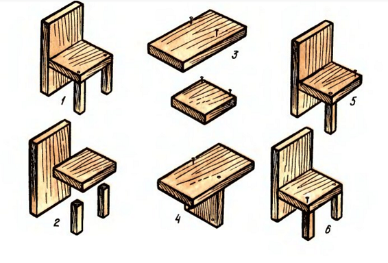 Некоторые приёмы работы по изготовлению поделок из дерева необходимы почти на каждом занятии: разметка, соединение, отделка. Разметка означает нанесение размеров или линий границ будущей детали на определённую заготовку если в этом есть необходимость. Соединение деталей осуществляется несколькими способами при помощи: гвоздей, клея. Отделка необходима для придания изделию красивого эстетического вида. Используется несколько вариантов: полирование наждачной бумагой, наклеивание ткани и других материалов, окрашивание акриловыми красками.