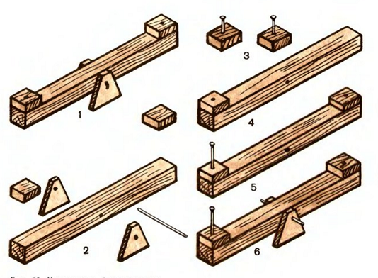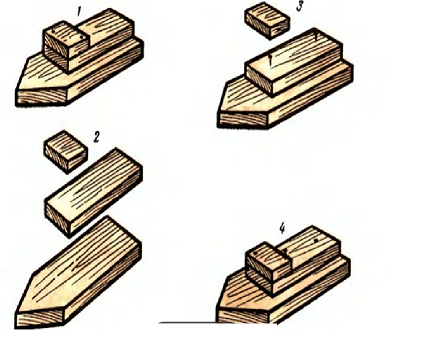 При освоении детьми столярных инструментов параллельно идет обучение работе с деревом, где особенно важна наглядность. Необходимо показать детали задуманной конструкции, приемы работы, готовый образец, выполненный взрослым. В этом случае мальчикам интереснее и легче работать, идет постепенное овладение техническими приемами (как правильно вбить гвоздь, вытащить его клещами, делать заметки, определяя место деталей, используя мерку).
