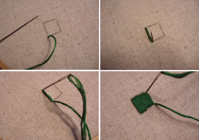 Далее следующий стежок начинается снова от первого контура рядом с первым стежком.